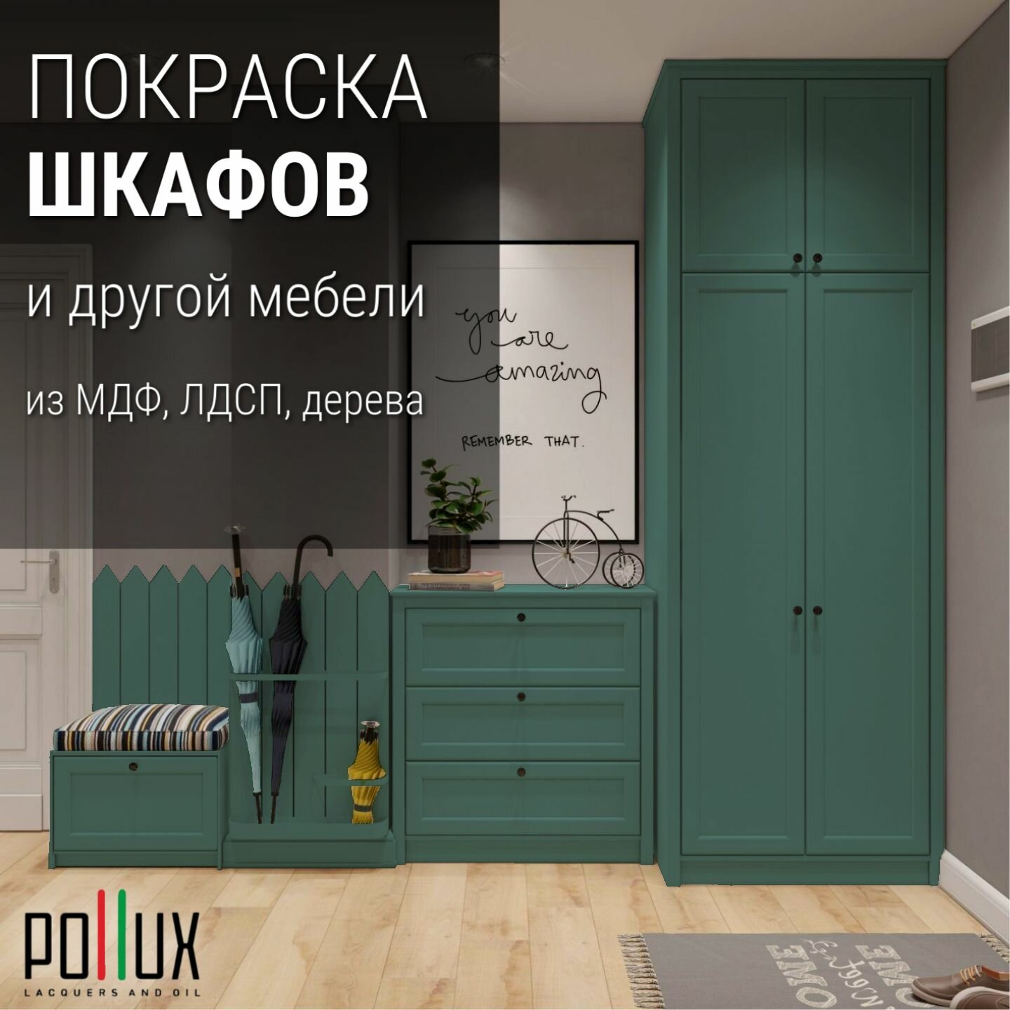 Краска для мебели без запаха матовая быстросохнущая для кухни / дерева / декора акриловая Pollux Decor Matt, объем 0,25л, цвет изумрудно-зеленый (RAL 6001)