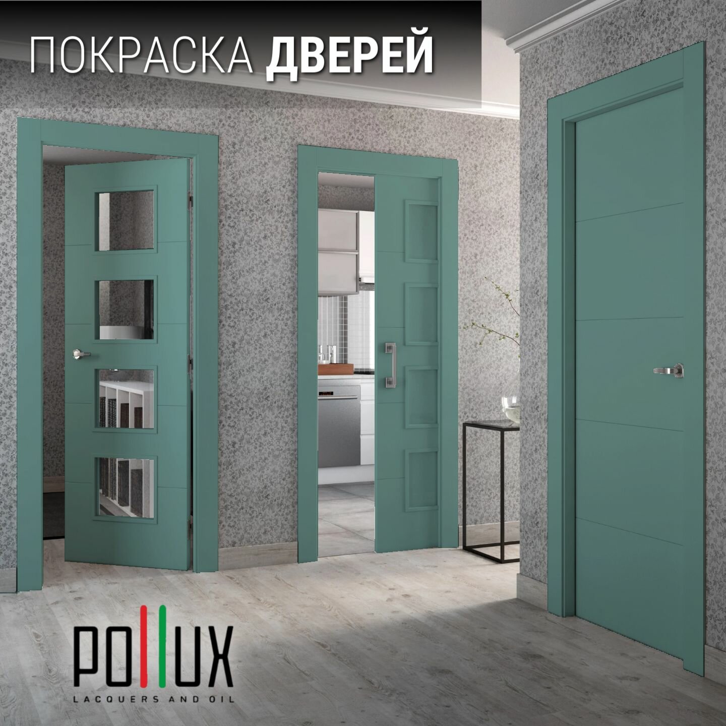 Краска для мебели без запаха матовая быстросохнущая для кухни / дерева / декора акриловая Pollux Decor Matt, объем 0,25л, цвет сине-зелёный (RAL 6004)