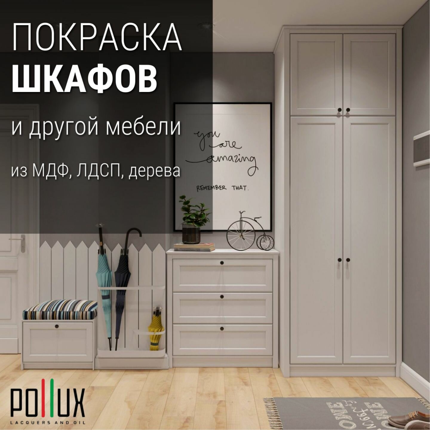Краска для мебели без запаха матовая быстросохнущая для кухни / дерева / декора акриловая Pollux Decor Matt, объем 0,5л, цвет папирусно белый (RAL 9018)