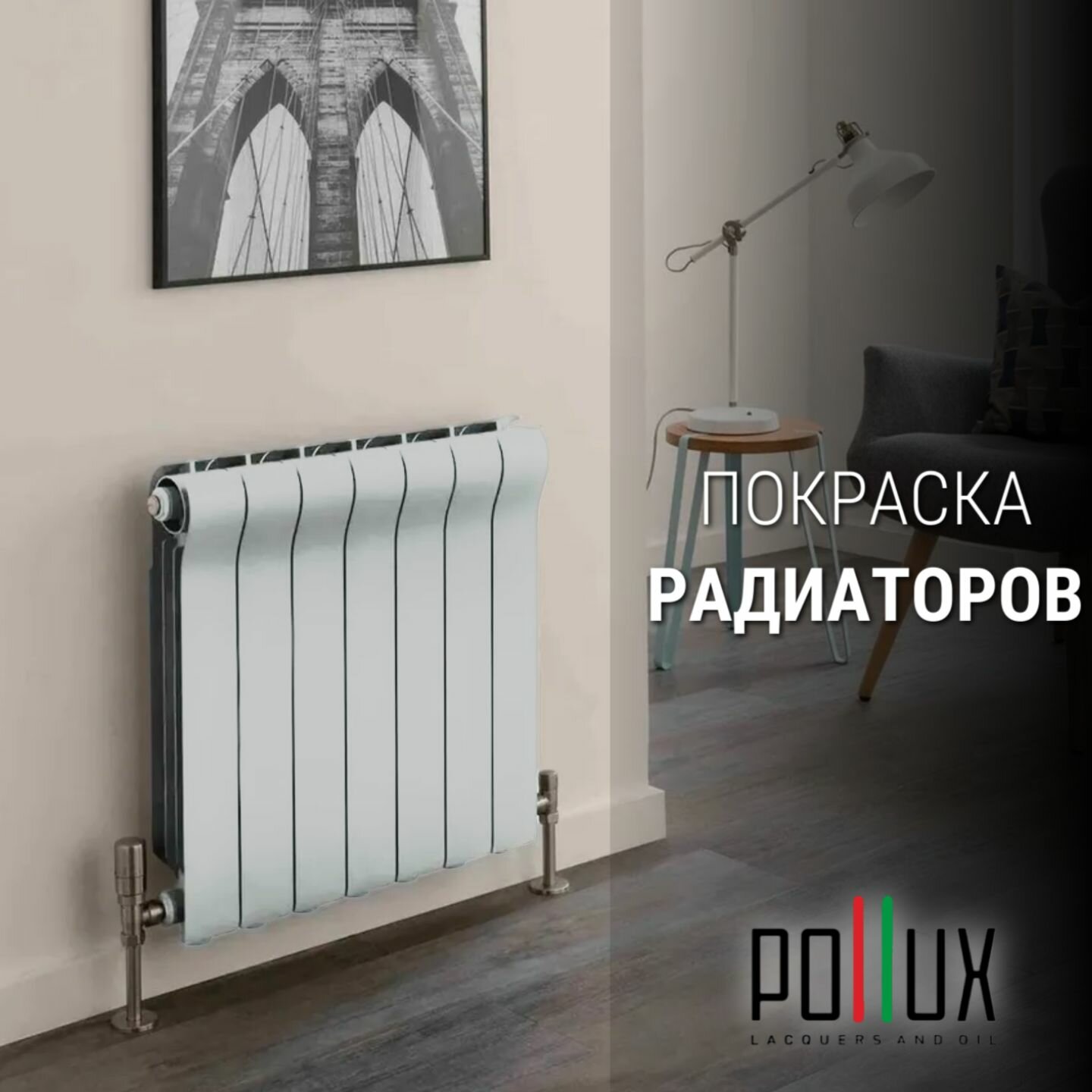 Краска для мебели / кухни / радиаторов акриловая без запаха быстросохнущая матовая Pollux Decor Matt, объем 0,5л, цвет охра желтая (RAL 1024)