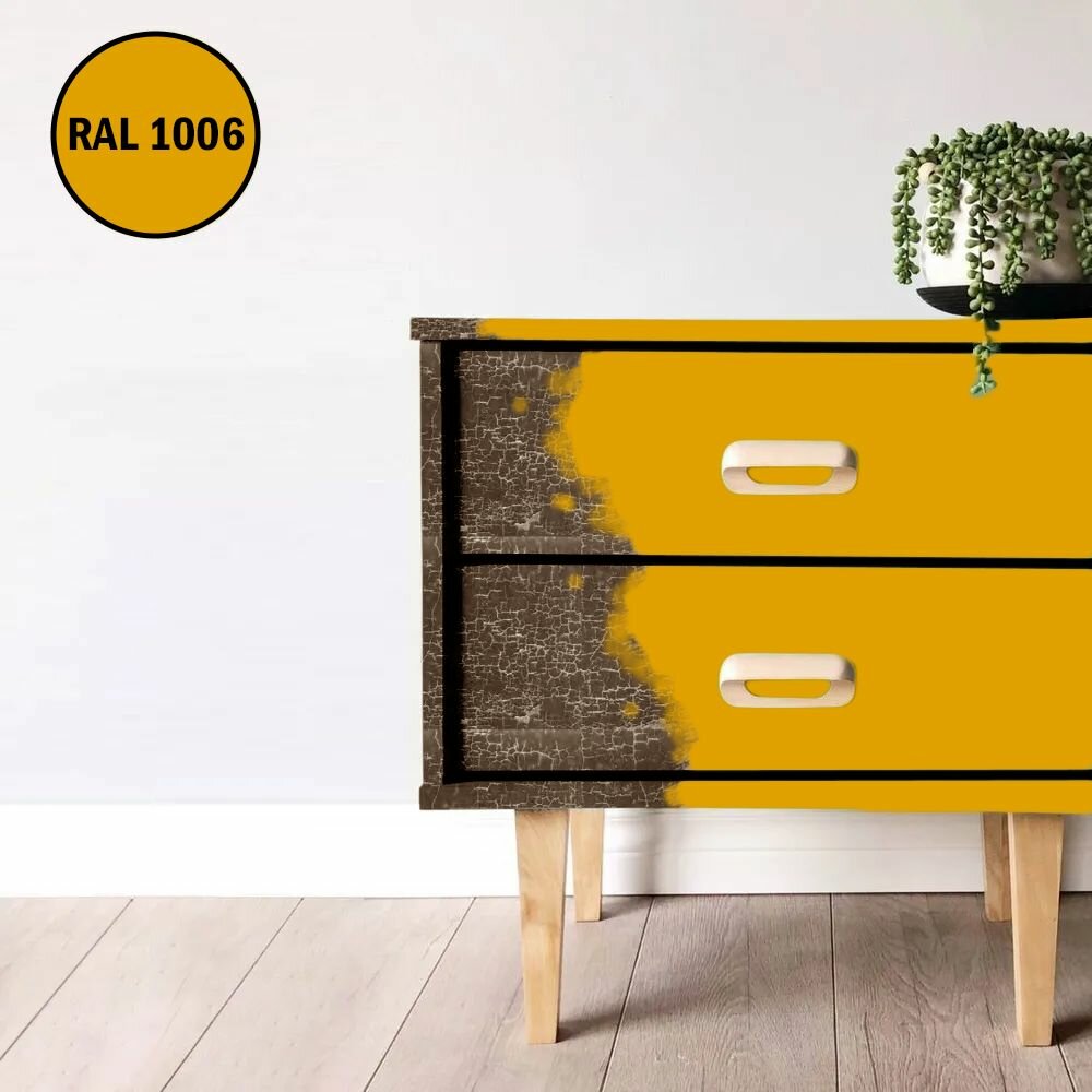 Краска для мебели / кухни / радиаторов акриловая без запаха быстросохнущая матовая Pollux Decor Matt, объем 0,5л, цвет охра желтая (RAL 1024)