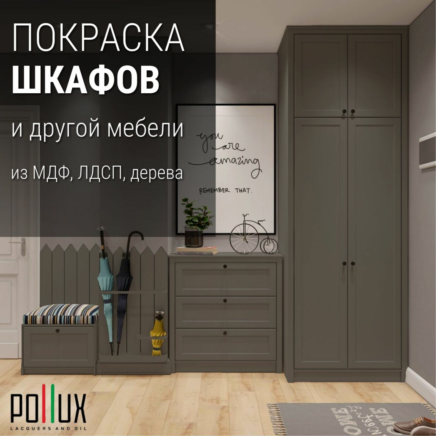 Краска для мебели без запаха матовая быстросохнущая для кухни / дерева / декора акриловая Pollux Decor Matt, объем 0,25л, цвет серый мох (RAL 7003)
