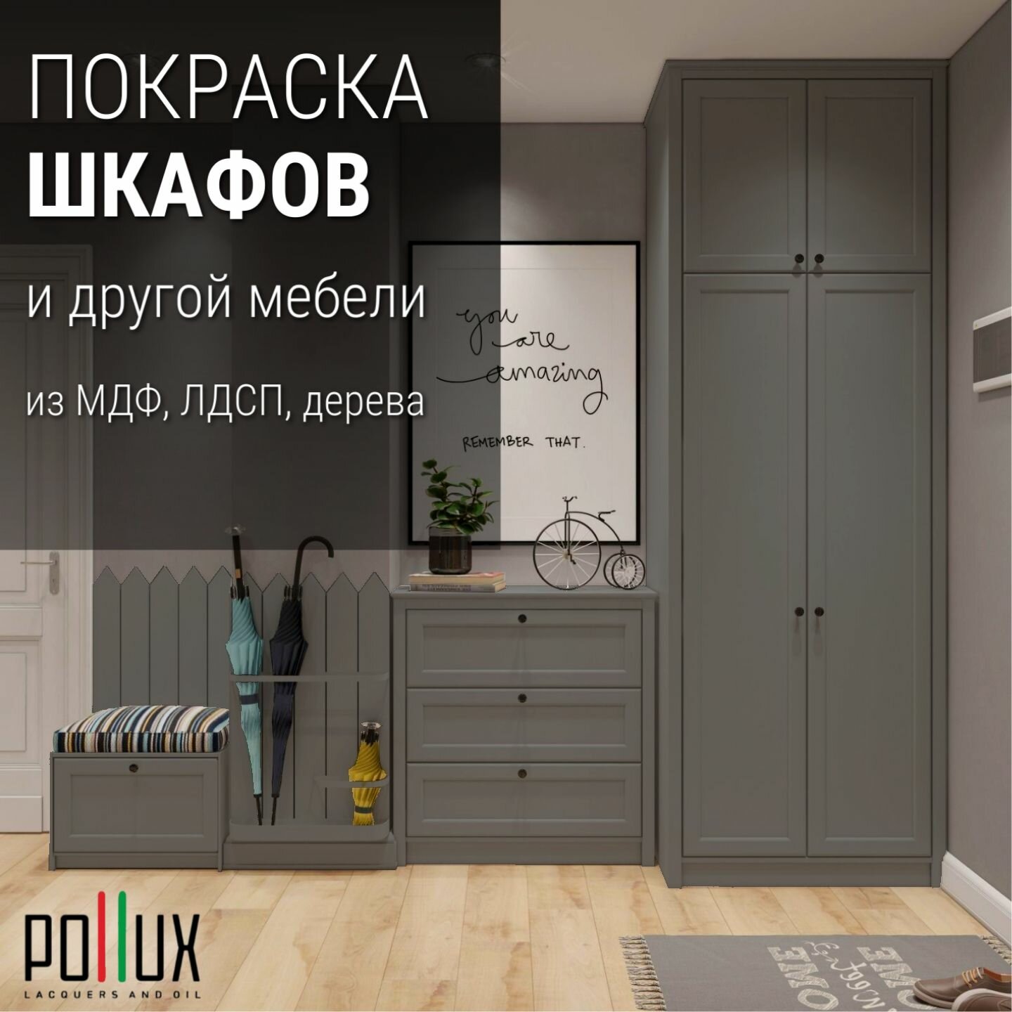 Краска для мебели без запаха матовая быстросохнущая для кухни / дерева / декора акриловая Pollux Decor Matt, объем 0,5л, цвет серый (RAL 7042)