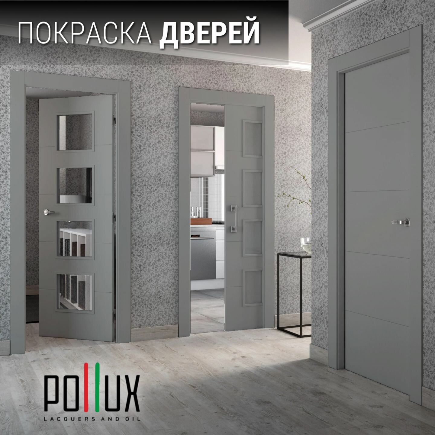 Краска для мебели без запаха матовая быстросохнущая для кухни / дерева / декора акриловая Pollux Decor Matt, объем 0,5л, цвет серое окно (RAL 7040)