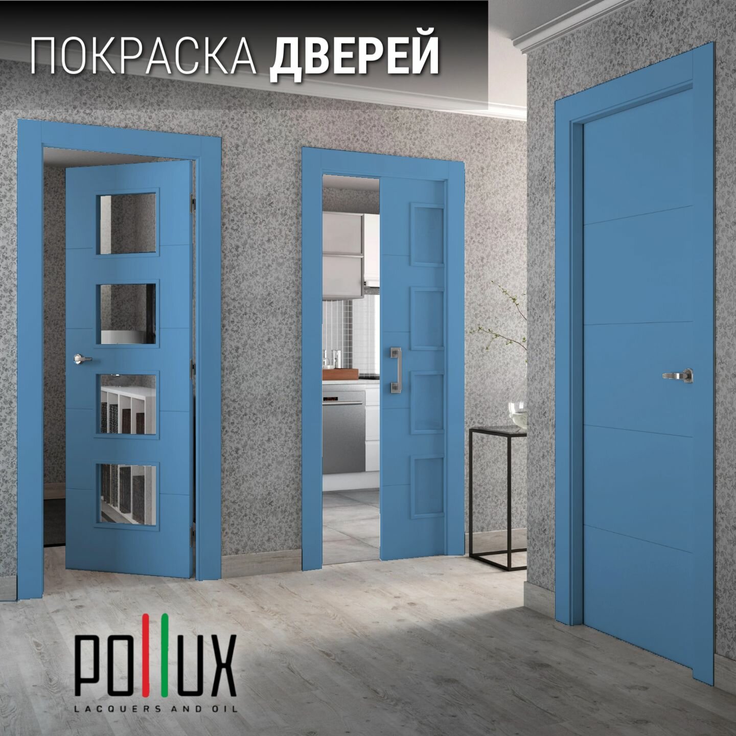 Краска для мебели без запаха матовая быстросохнущая для кухни / дерева / декора акриловая Pollux Decor Matt, объем 0,25л, цвет голубой (RAL 5012)