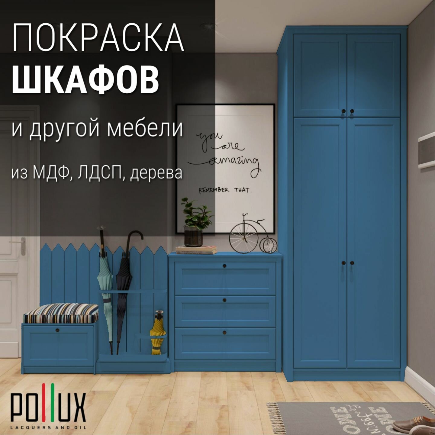 Краска для мебели без запаха матовая быстросохнущая для кухни / дерева / декора акриловая Pollux Decor Matt, объем 0,25л, цвет капри синий (RAL 5019)