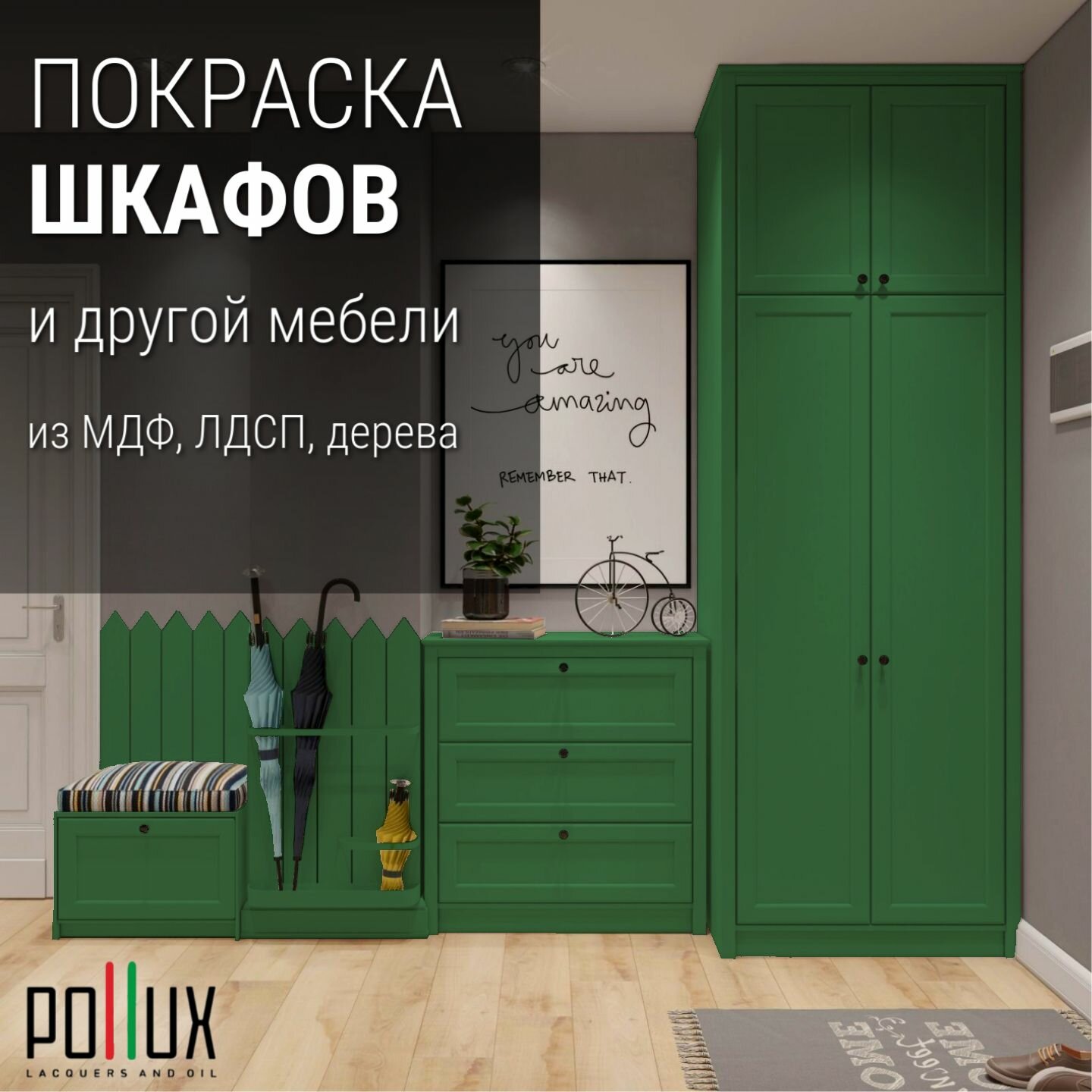 Краска для мебели без запаха матовая быстросохнущая для кухни / дерева / декора акриловая Pollux Decor Matt, объем 0,5л, цвет изумрудно-зеленый (RAL 6001)