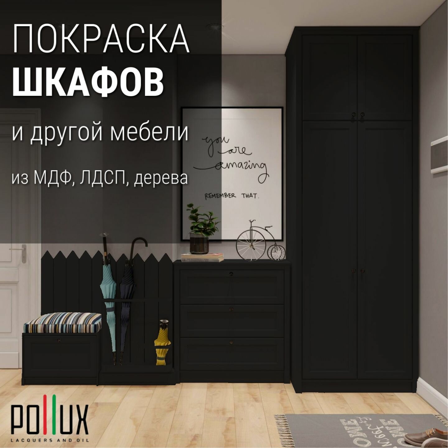 Краска для мебели без запаха матовая быстросохнущая для кухни / дерева / декора акриловая Pollux Decor Matt, объем 0,25л, цвет графитно-чёрный (RAL 9011)