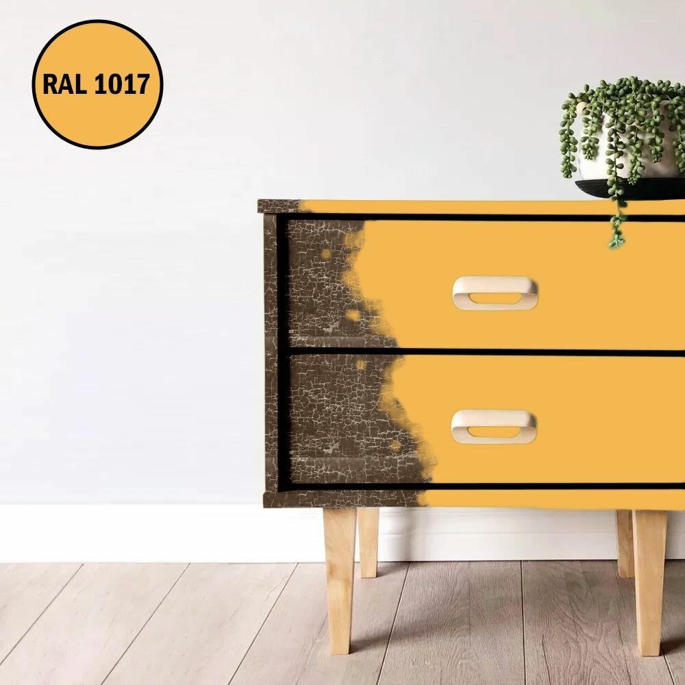 Краска для мебели / кухни / радиаторов акриловая без запаха быстросохнущая матовая Pollux Decor Matt, объем 0,5л, цвет охра желтая (RAL 1024)