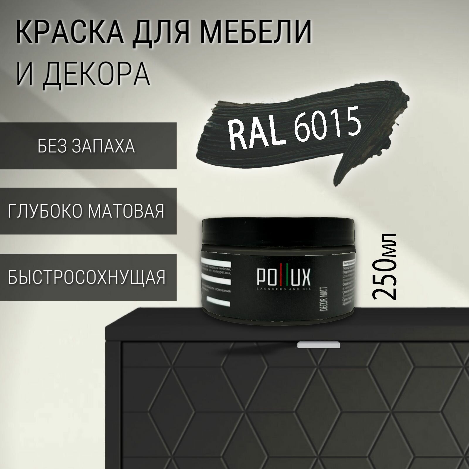 Купить Краска для мебели без запаха матовая быстросохнущая для кухни / дерева / декора акриловая Pollux Decor Matt, объем 0,25л, цвет чёрно-оливковый (RAL 6015)