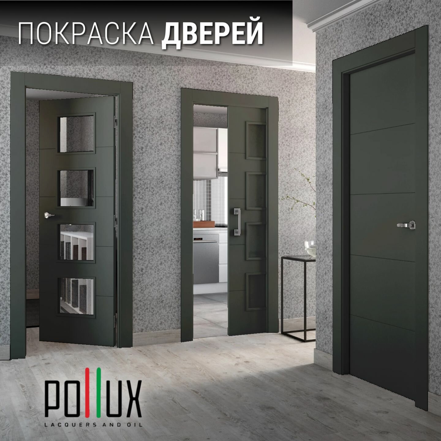 Краска для мебели без запаха матовая быстросохнущая для кухни / дерева / декора акриловая Pollux Decor Matt, объем 0,25л, цвет зелёно-серый (RAL 7009)
