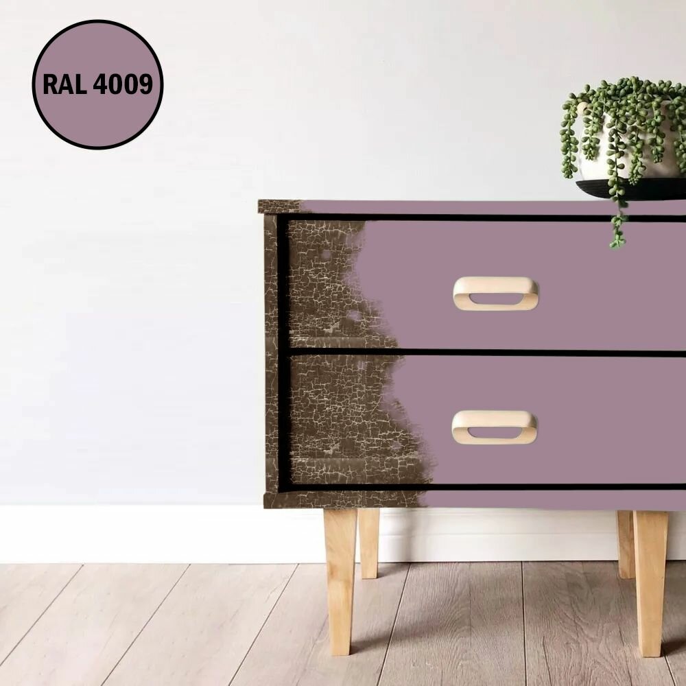 СохранитьКраска для мебели / кухни / радиаторов акриловая без запаха быстросохнущая матовая Pollux Decor Matt, объем 0,25л, цвет пастельно-фиолетовый (RAL 4009) интересное: