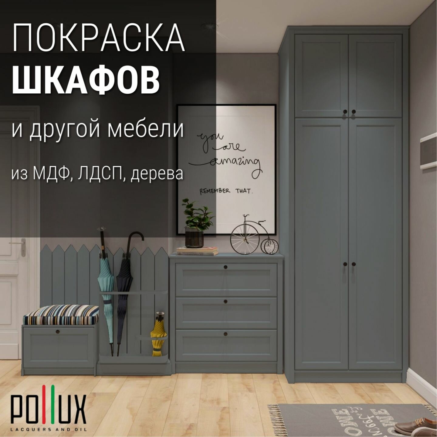Краска для мебели без запаха матовая быстросохнущая для кухни / дерева / декора акриловая Pollux Decor Matt, объем 0,25л, цвет серый мох (RAL 7003)
