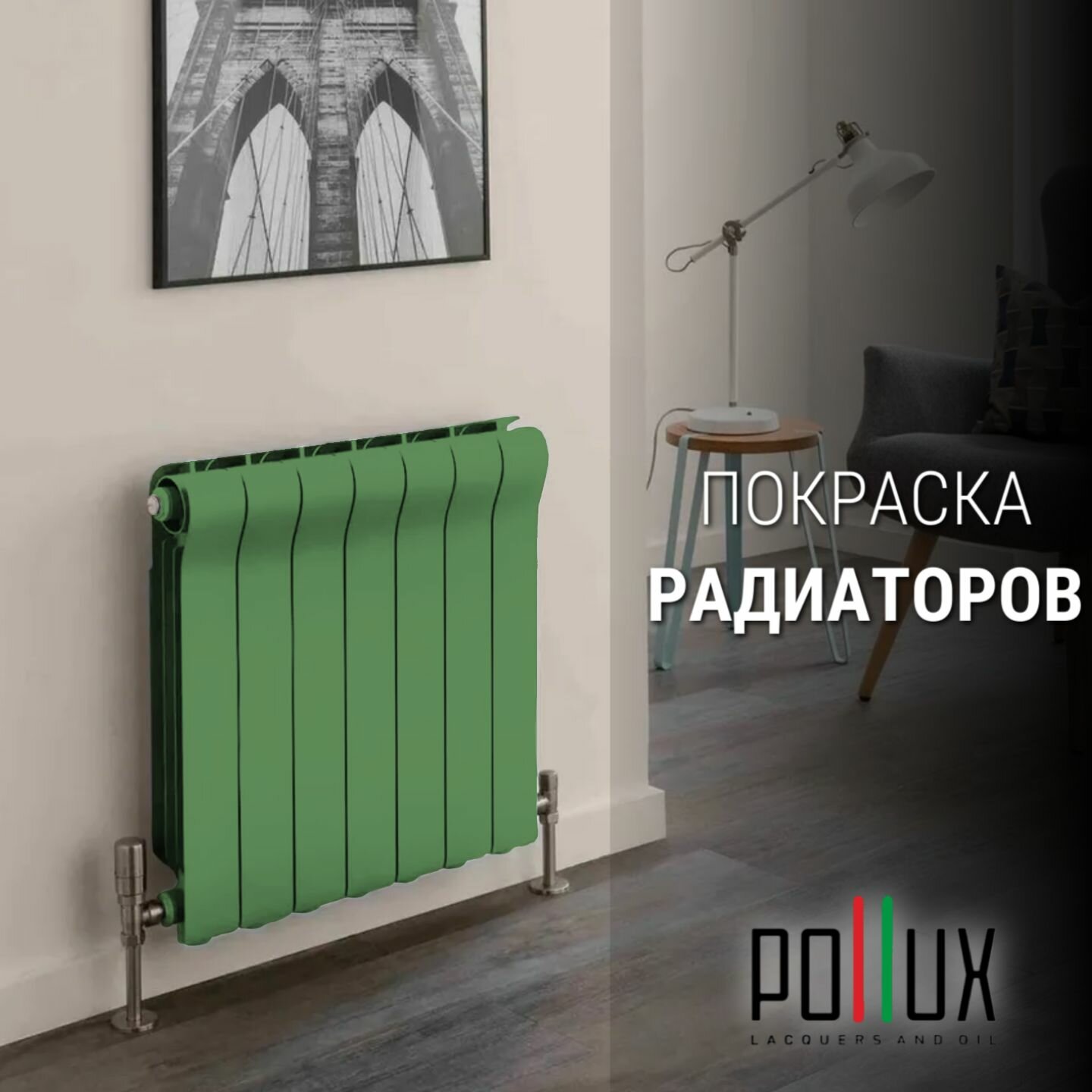 Краска для мебели без запаха матовая быстросохнущая для кухни / дерева / декора акриловая Pollux Decor Matt, объем 0,25л, цвет сигнальный зелёный (RAL 6032)
