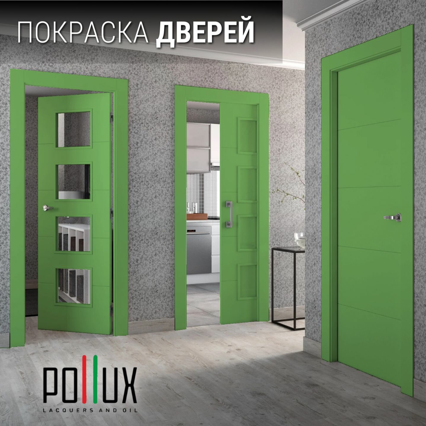 Краска для мебели без запаха матовая быстросохнущая для кухни / дерева / декора акриловая Pollux Decor Matt, объем 0,25л, цвет сигнальный зелёный (RAL 6032)