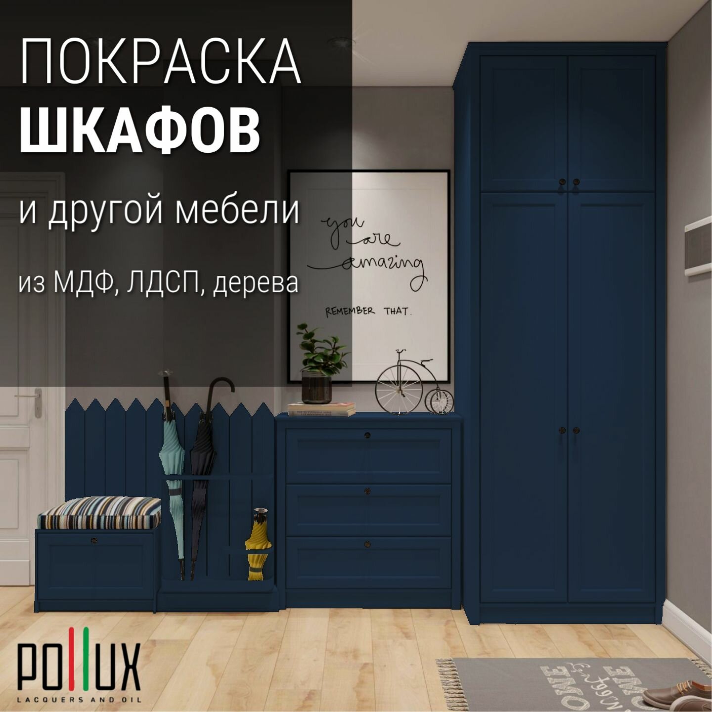 Краска для мебели без запаха матовая быстросохнущая для кухни / дерева / декора акриловая Pollux Decor Matt, объем 0,5л, цвет ультрамариново-синий (RAL 5002)