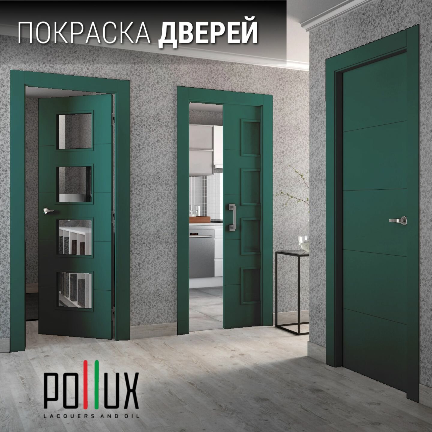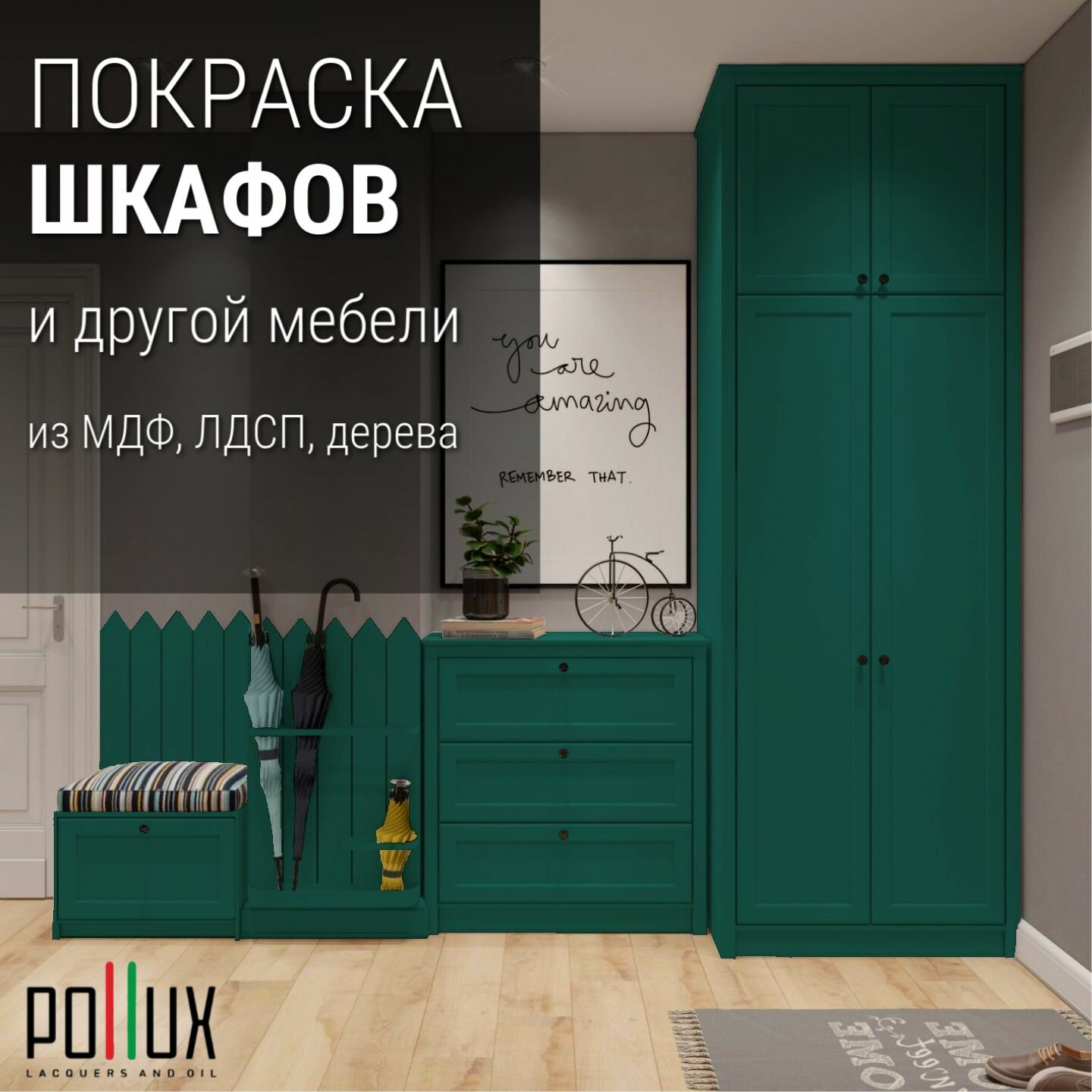Краска для мебели без запаха матовая быстросохнущая для кухни / дерева / декора акриловая Pollux Decor Matt, объем 0,25л, цвет изумрудно-зеленый (RAL 6001)