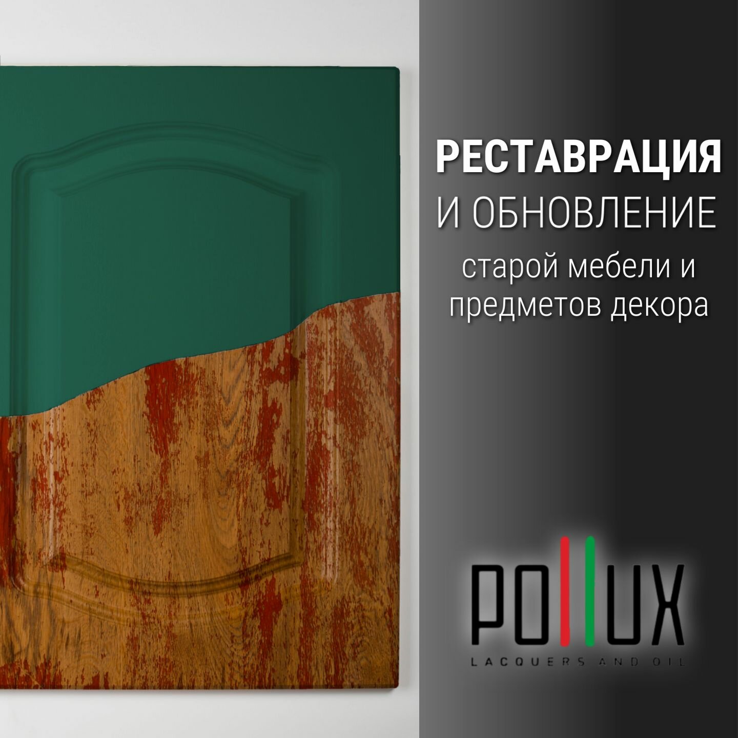 Краска для мебели без запаха матовая быстросохнущая для кухни / дерева / декора акриловая Pollux Decor Matt, объем 0,5л, цвет изумрудно-зеленый (RAL 6001)