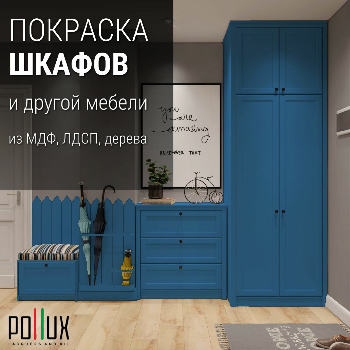 Краска для мебели без запаха матовая быстросохнущая для кухни / дерева / декора акриловая Pollux Decor Matt, объем 0,5л, цвет отдалённо синий (RAL 5023)