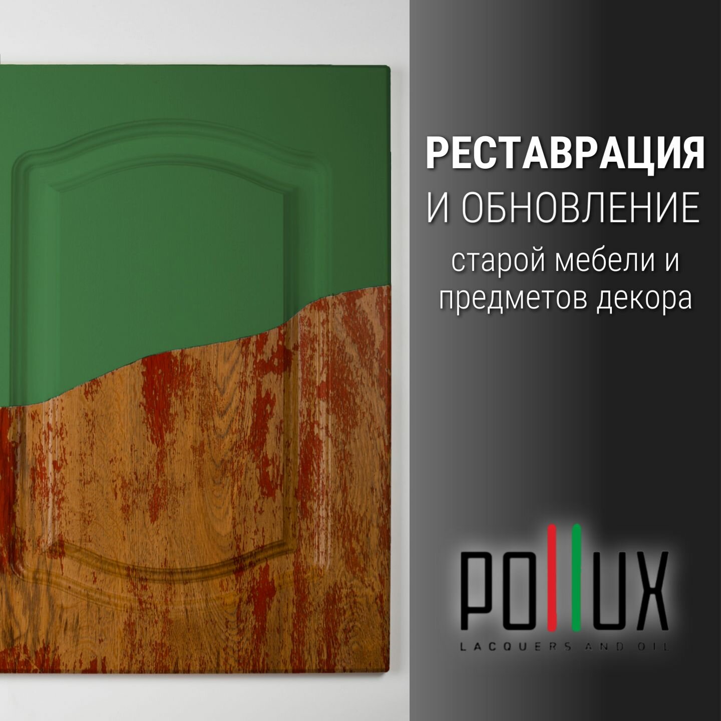 Краска для мебели без запаха матовая быстросохнущая для кухни / дерева / декора акриловая Pollux Decor Matt, объем 0,5л, цвет изумрудно-зеленый (RAL 6001)