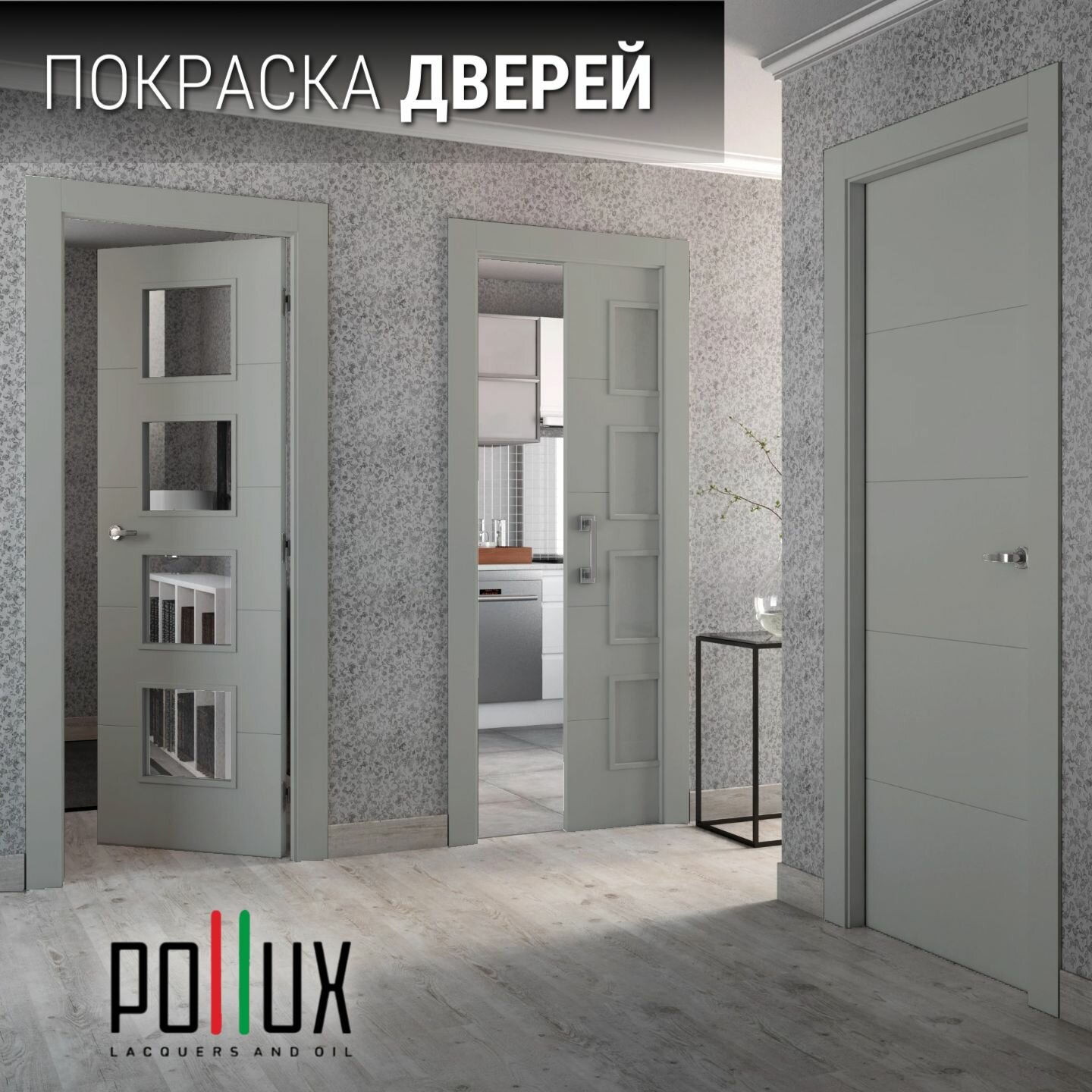 Краска для мебели без запаха матовая быстросохнущая для кухни / дерева / декора акриловая Pollux Decor Matt, объем 0,5л, цвет серый (RAL 7042)