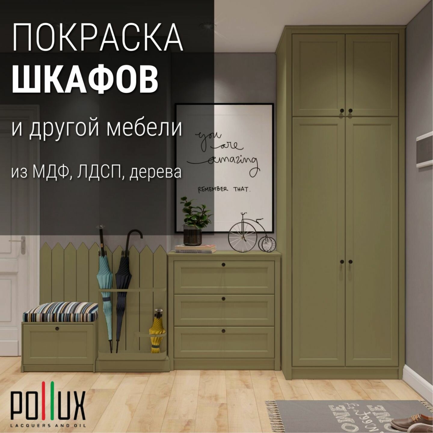 Краска для мебели без запаха матовая быстросохнущая для кухни / дерева / декора акриловая Pollux Decor Matt, объем 0,5л, цвет оливково-серый (RAL 7002)