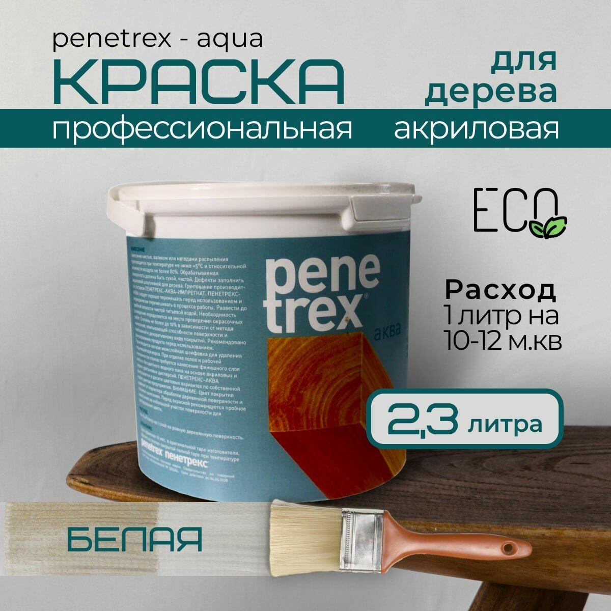 Купить Краска по дереву и мебели без запаха быстросохнущая водно-дисперсионная, пропитка, Penetrex Аква белая 2,3л