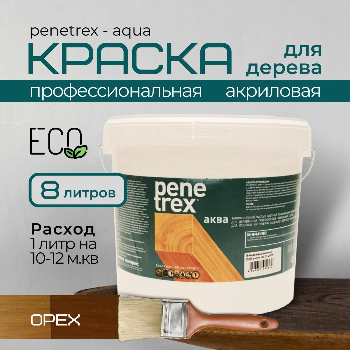 Краска по дереву и мебели без запаха быстросохнущая водно-дисперсионная Penetrex Аква, пропитка белая 8л