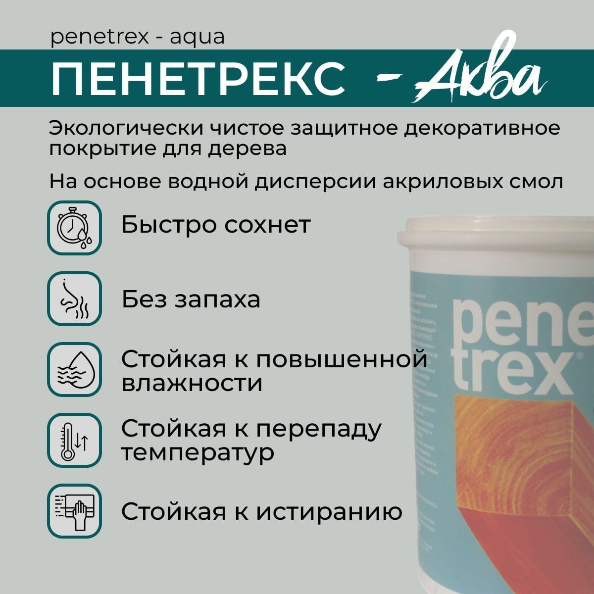 Ниже Вы можете прочитать отзывы на Краска по дереву и мебели без запаха быстросохнущая водно-дисперсионная, пропитка Penetrex Аква ольха 2,3л, ознакомится с подробными характеристиками, посмотреть интересные обзоры и фотографии на Краска по дереву и мебели без запаха быстросохнущая водно-дисперсионная, пропитка Penetrex Аква ольха 2,3л.