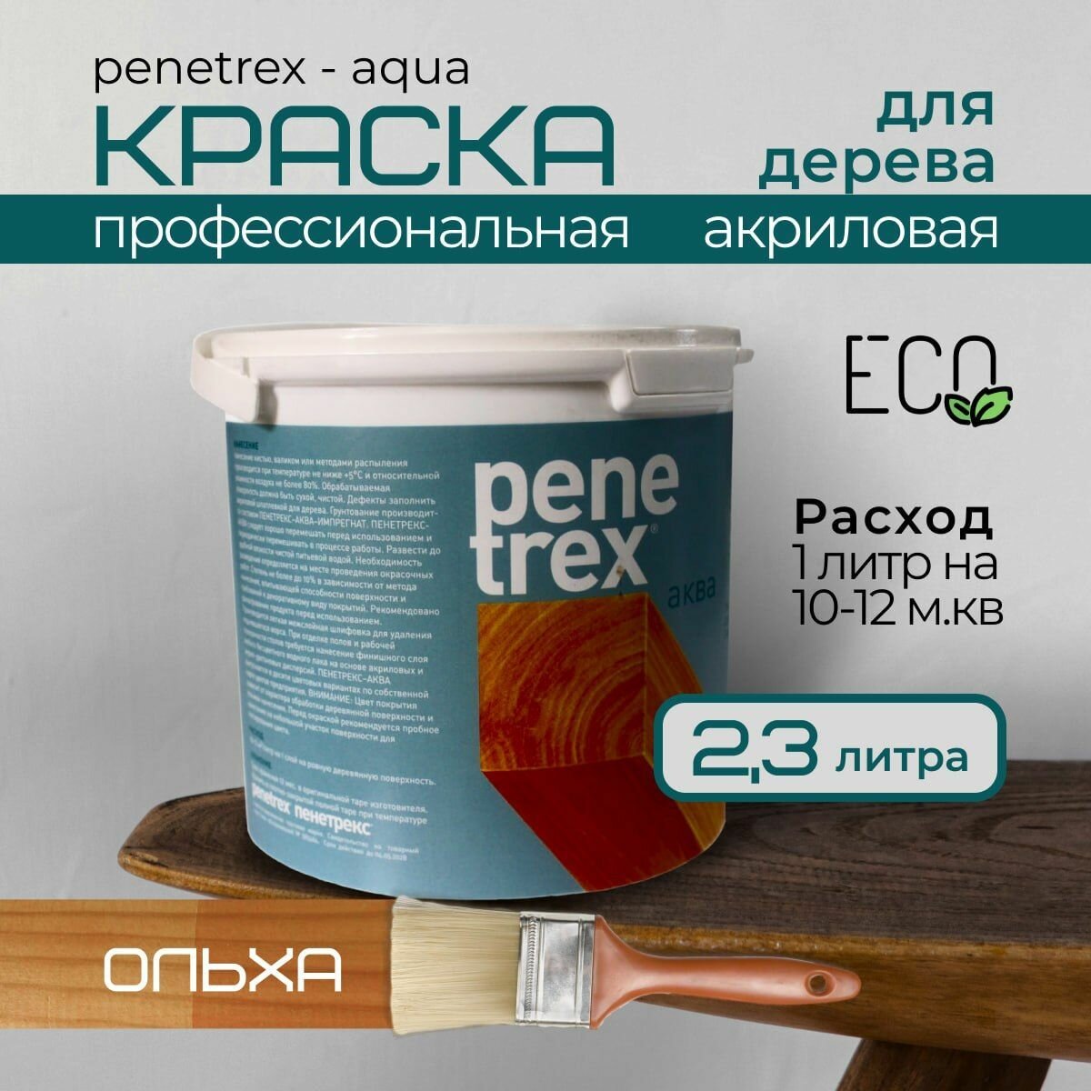 Купить Краска по дереву и мебели без запаха быстросохнущая водно-дисперсионная, пропитка Penetrex Аква ольха 2,3л