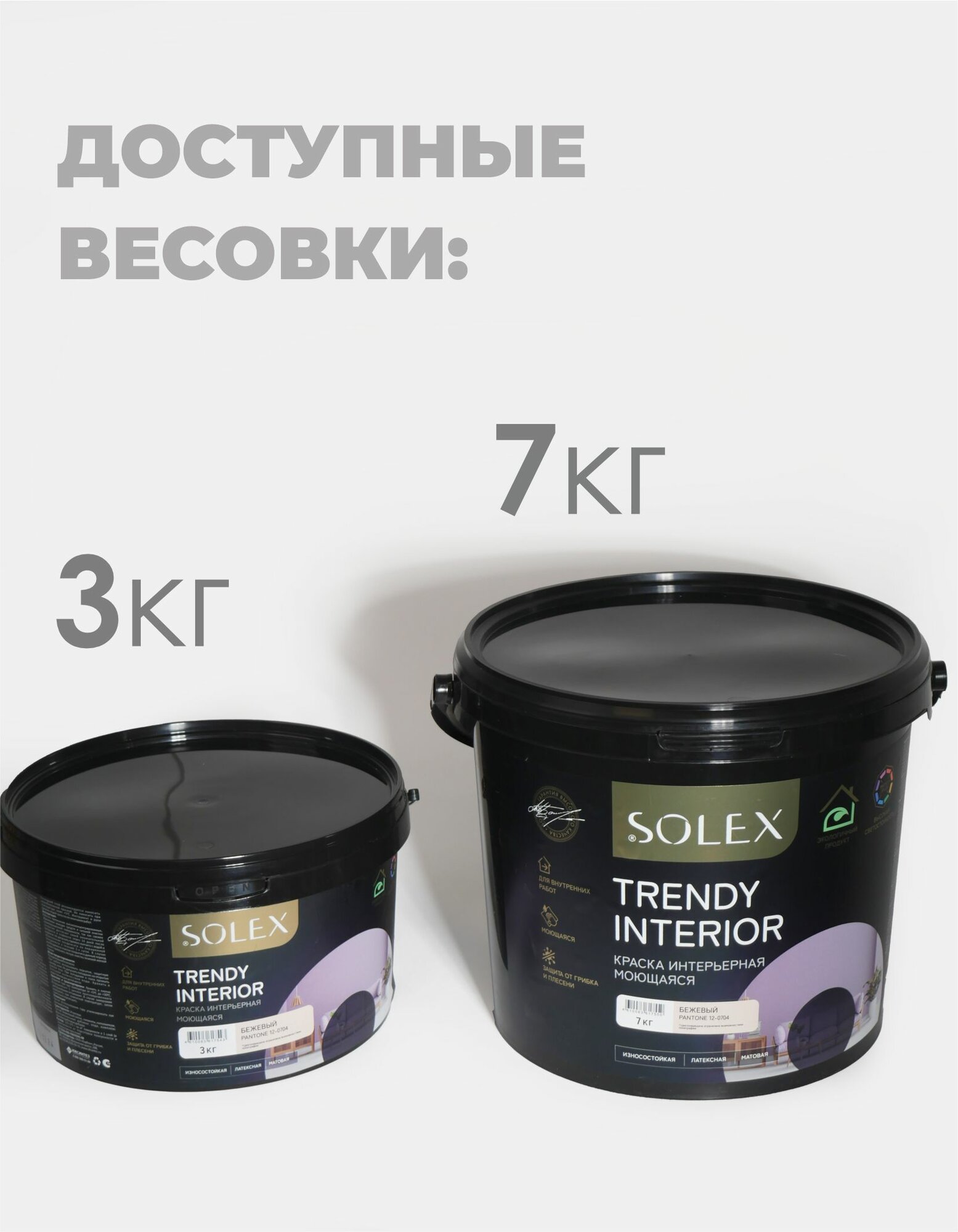 Краска для стен и обоев интерьерная моющаяся, TRENDY INTERIOR, SOLEX - бежевый (3 кг.)