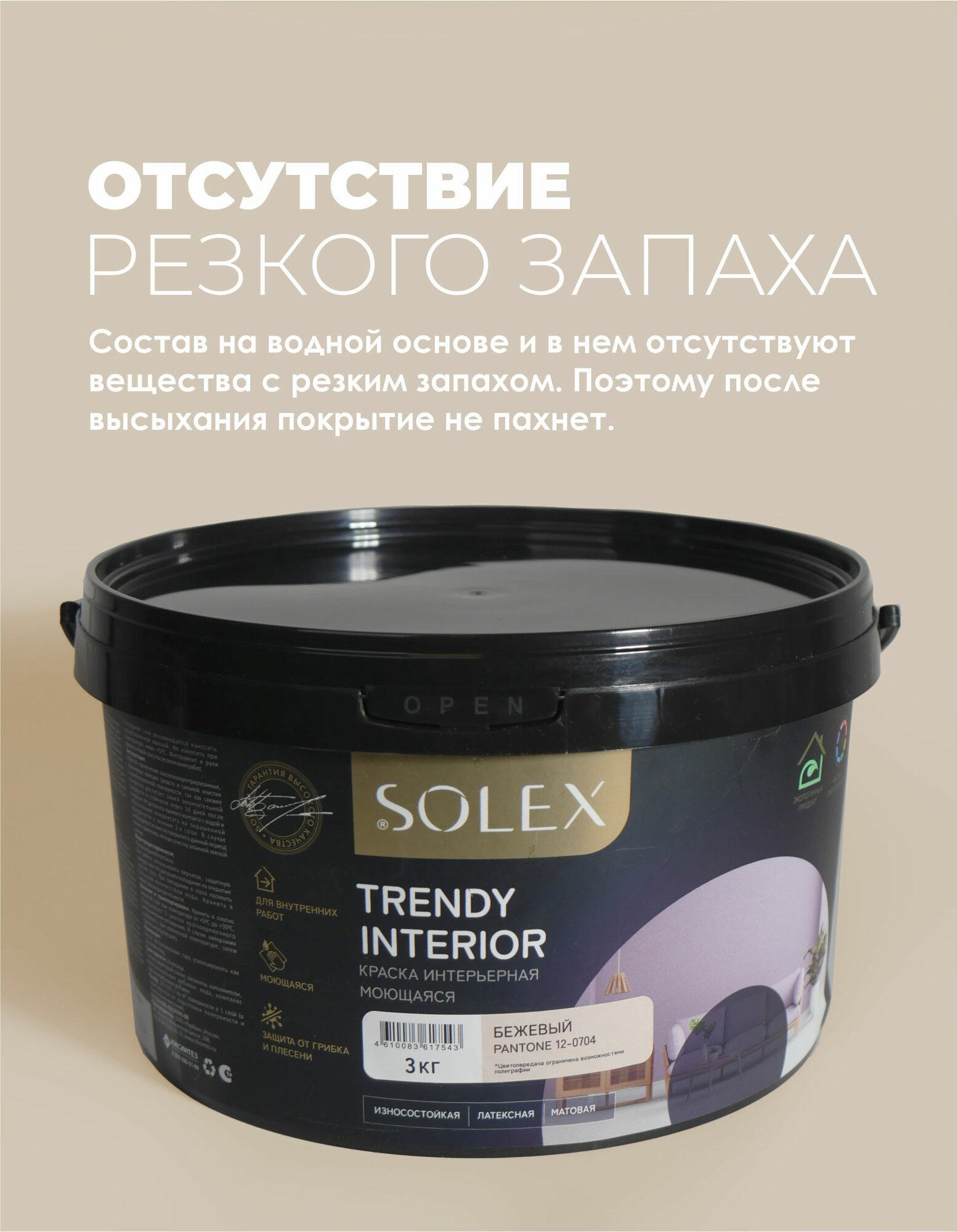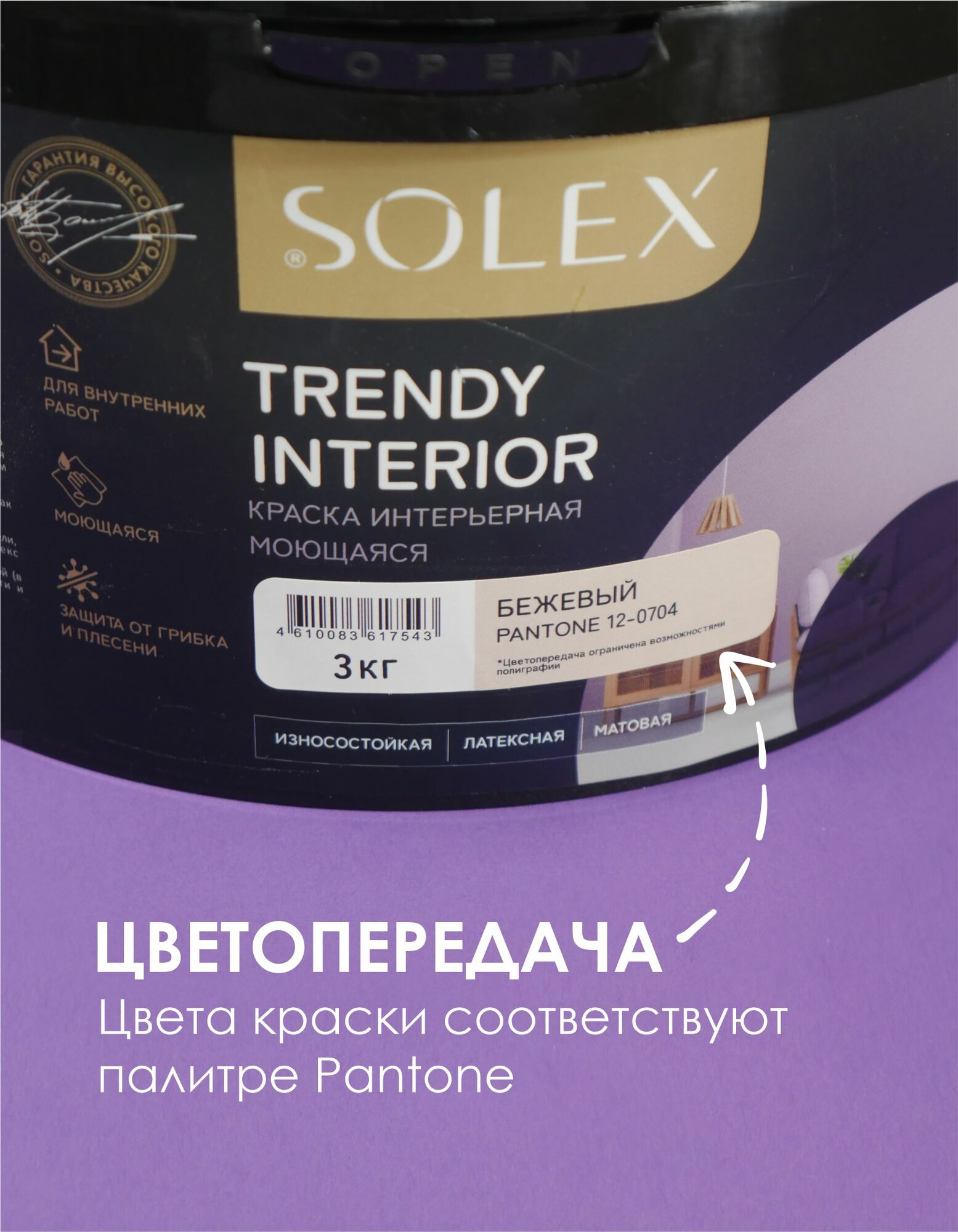 Краска для стен и обоев интерьерная моющаяся, TRENDY INTERIOR, SOLEX - кашемир (3 кг.)