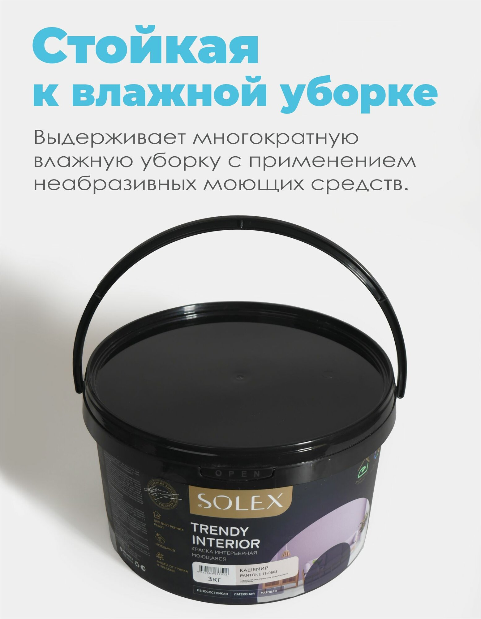 СохранитьКраска для стен и обоев интерьерная моющаяся, TRENDY INTERIOR, SOLEX - кашемир (3 кг.) интересное: