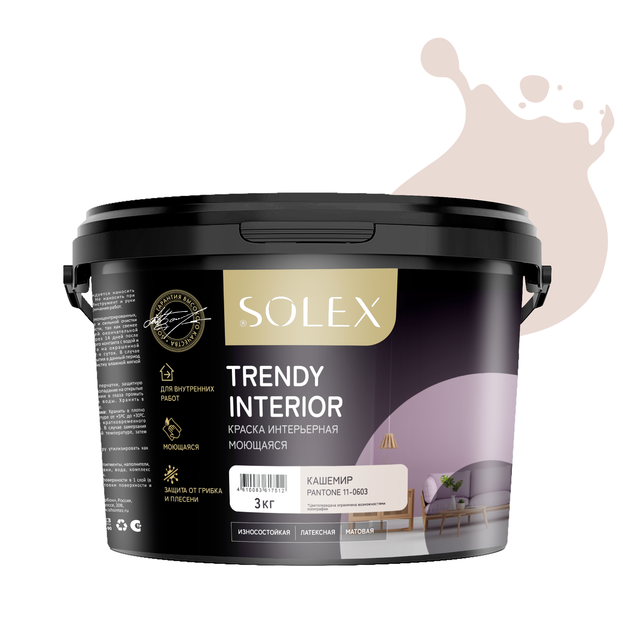 Купить Краска для стен и обоев интерьерная моющаяся, TRENDY INTERIOR, SOLEX - кашемир (3 кг.)