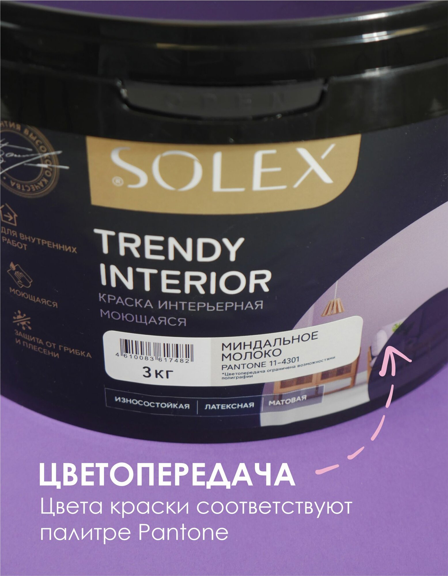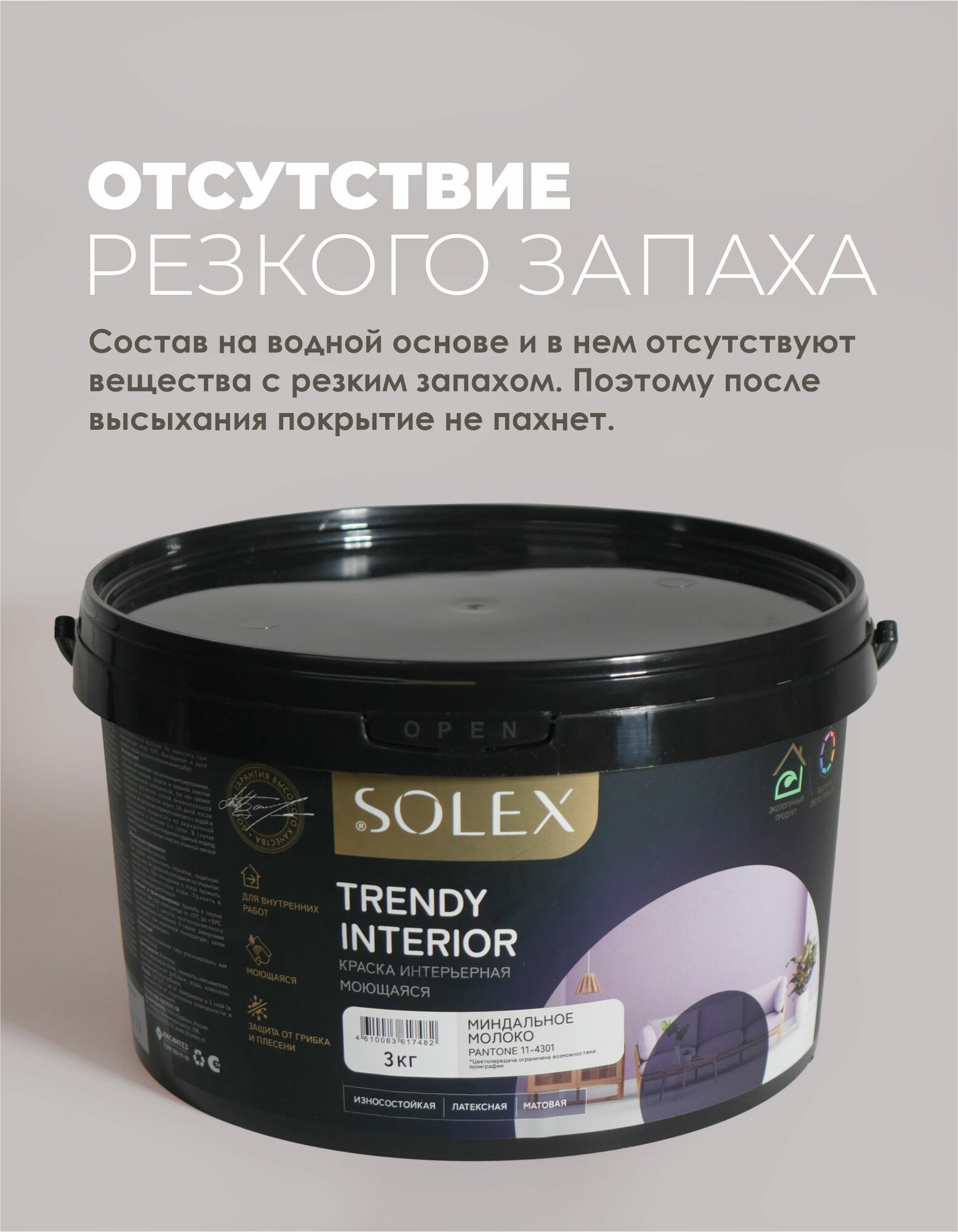 Краска для стен и обоев интерьерная моющаяся, TRENDY INTERIOR, SOLEX - миндальное молоко (7 кг.)