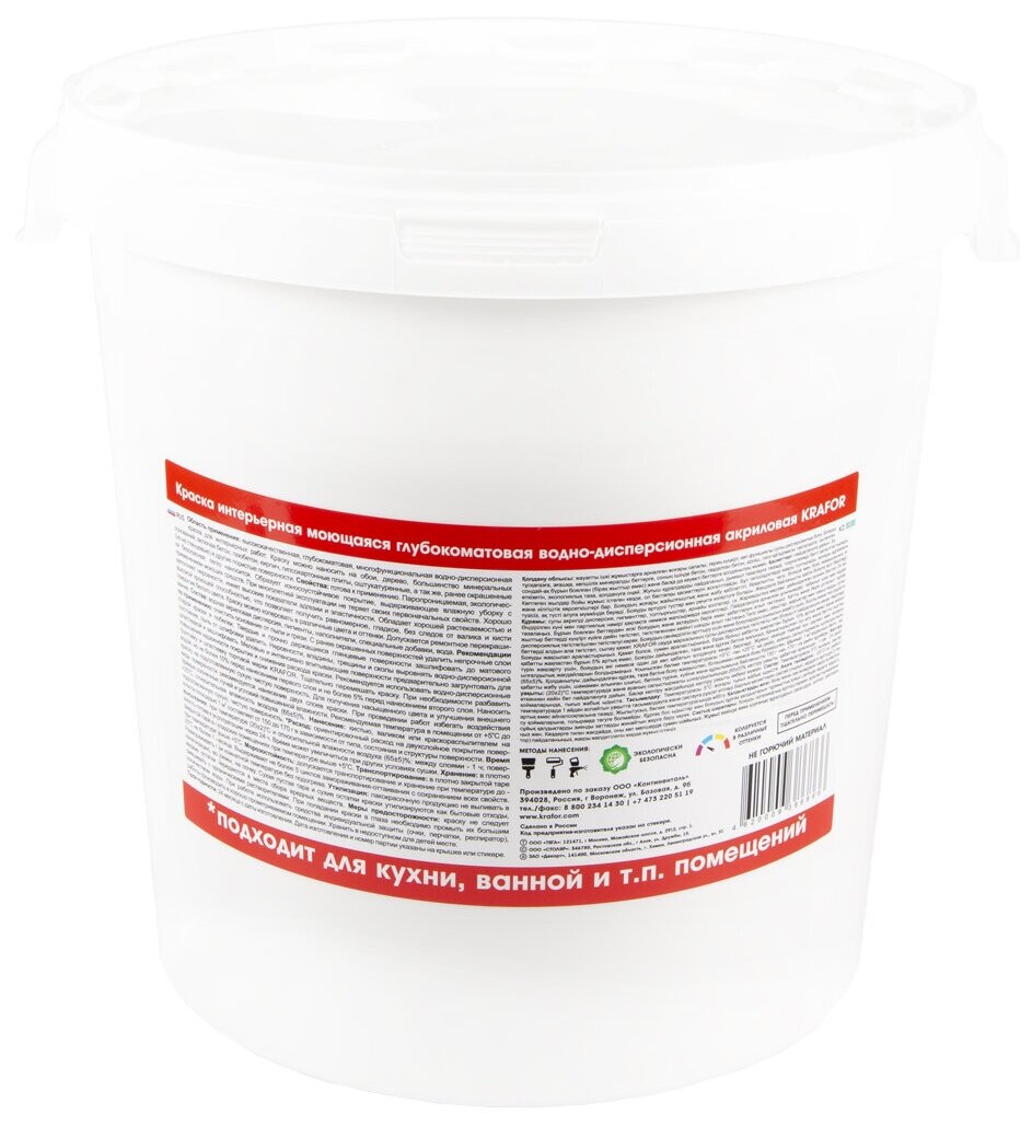 Краска водно-дисперсионная интерьерная моющаяся Krafor , глубокоматовая, 40 кг, белая интересное: