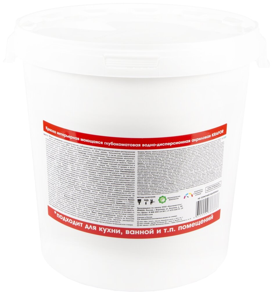 Краска водно-дисперсионная интерьерная моющаяся Krafor , глубокоматовая, 14 кг, белая