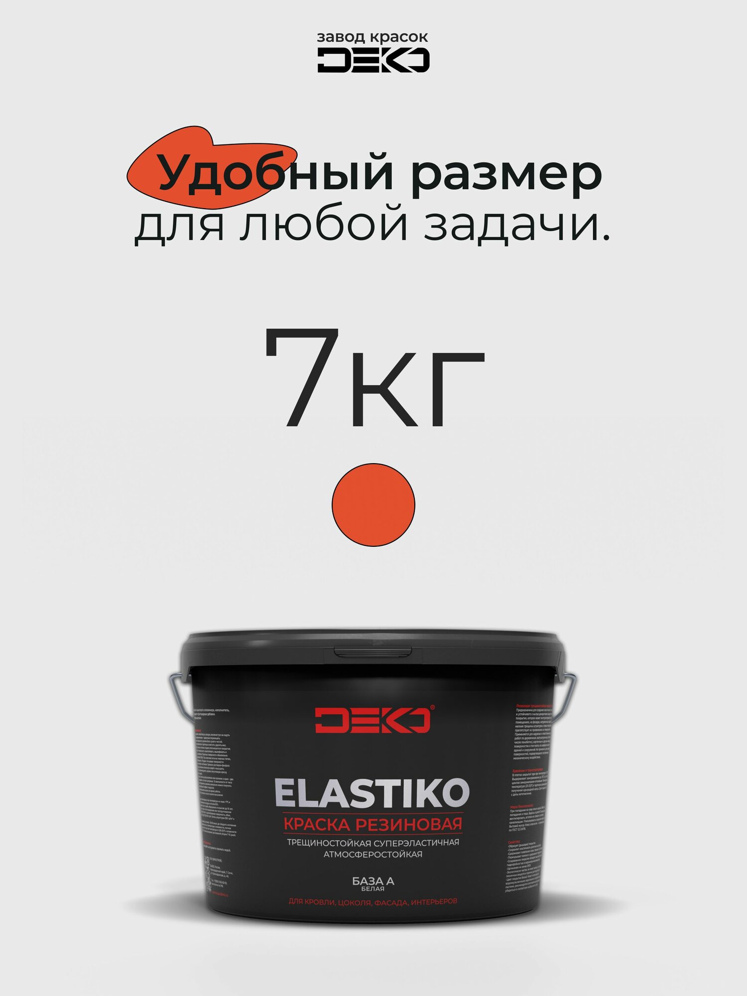 Купить DEKO краска резиновая моющаяся для влажных помещений - 7кг. Для стен, фасадов и потолков.