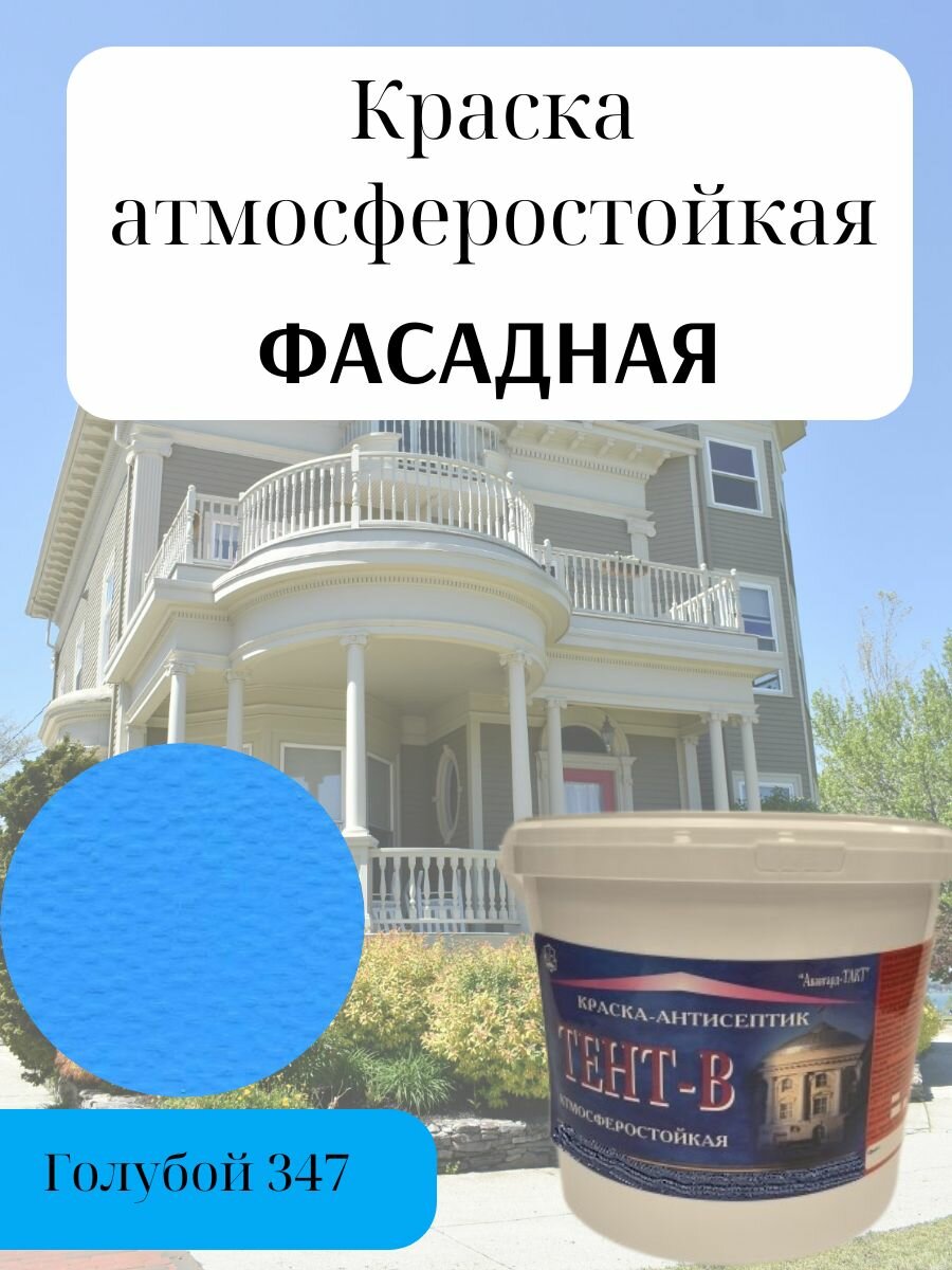 Краска фасадная атмосферо влагостойкая без запаха, быстросохнущая светостойкая акриловая матовая цвет Голубой (1кг)