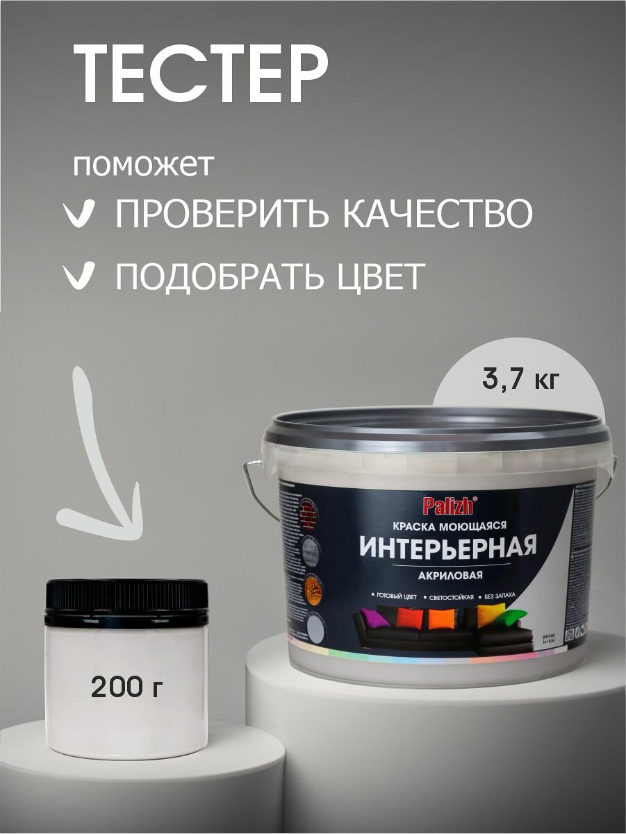 Краска для стен, обоев и потолков акриловая моющаяся интерьерная матовая "Palizh" тестер 200гр, пломбир