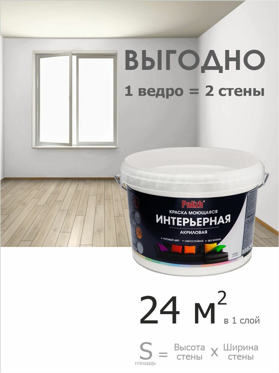 Краска для стен, обоев и потолков акриловая моющаяся интерьерная матовая "Palizh" (3,7 кг), пломбир