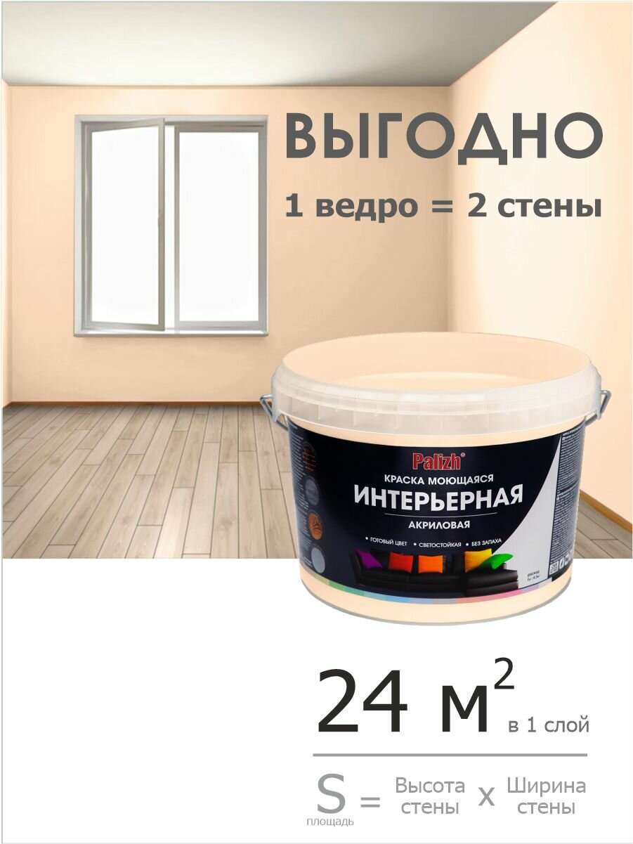 Купить Краска для стен, обоев и потолков акриловая моющаяся интерьерная матовая цветная "Palizh" (3,7 кг), крем-брюле (бежевая)