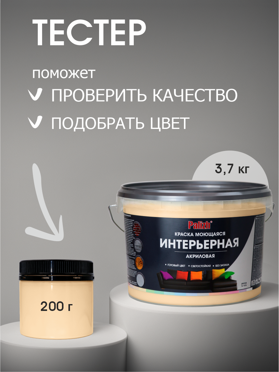 Краска для стен, обоев и потолков акриловая моющаяся интерьерная матовая цветная "Palizh" тестер 200гр, имбирь (бежевая)
