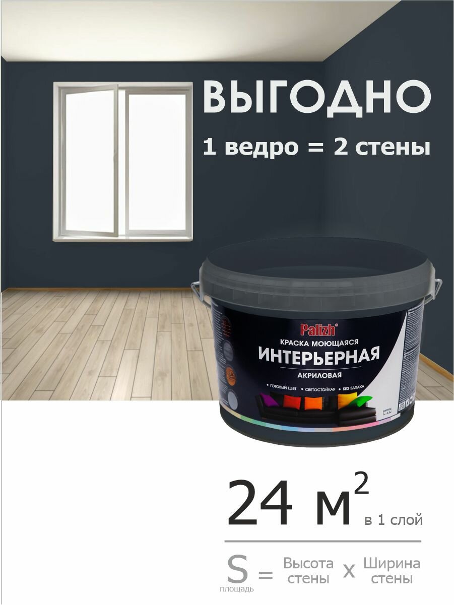 СохранитьКраска для стен, обоев и потолков акриловая моющаяся интерьерная матовая цветная "Palizh" (3,3 кг), графит RAL 7024 интересное:
