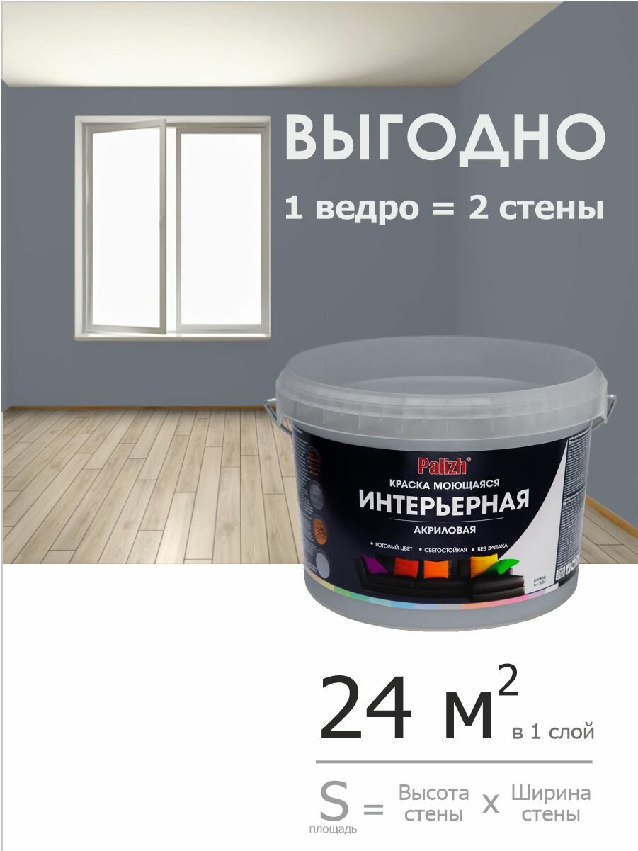 Краска для стен, обоев и потолков акриловая моющаяся интерьерная матовая цветная "Palizh" (3,7 кг), серый кварц RAL 7040