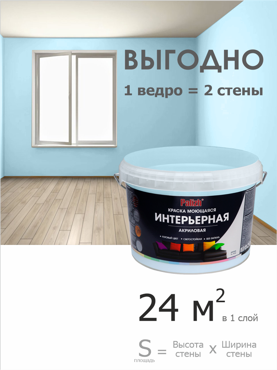 СохранитьКраска для стен, обоев и потолков акриловая моющаяся интерьерная матовая цветная "Palizh" (3,7 кг), голубой лед (голубая) интересное:
