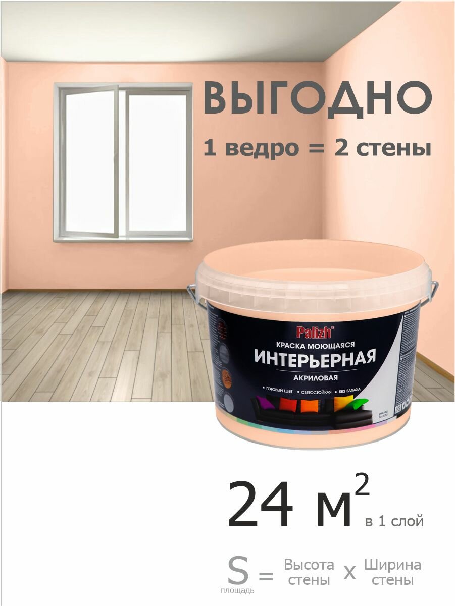 Краска для стен, обоев и потолков акриловая моющаяся интерьерная матовая цветная "Palizh" (3,7 кг), крем-брюле (бежевая)