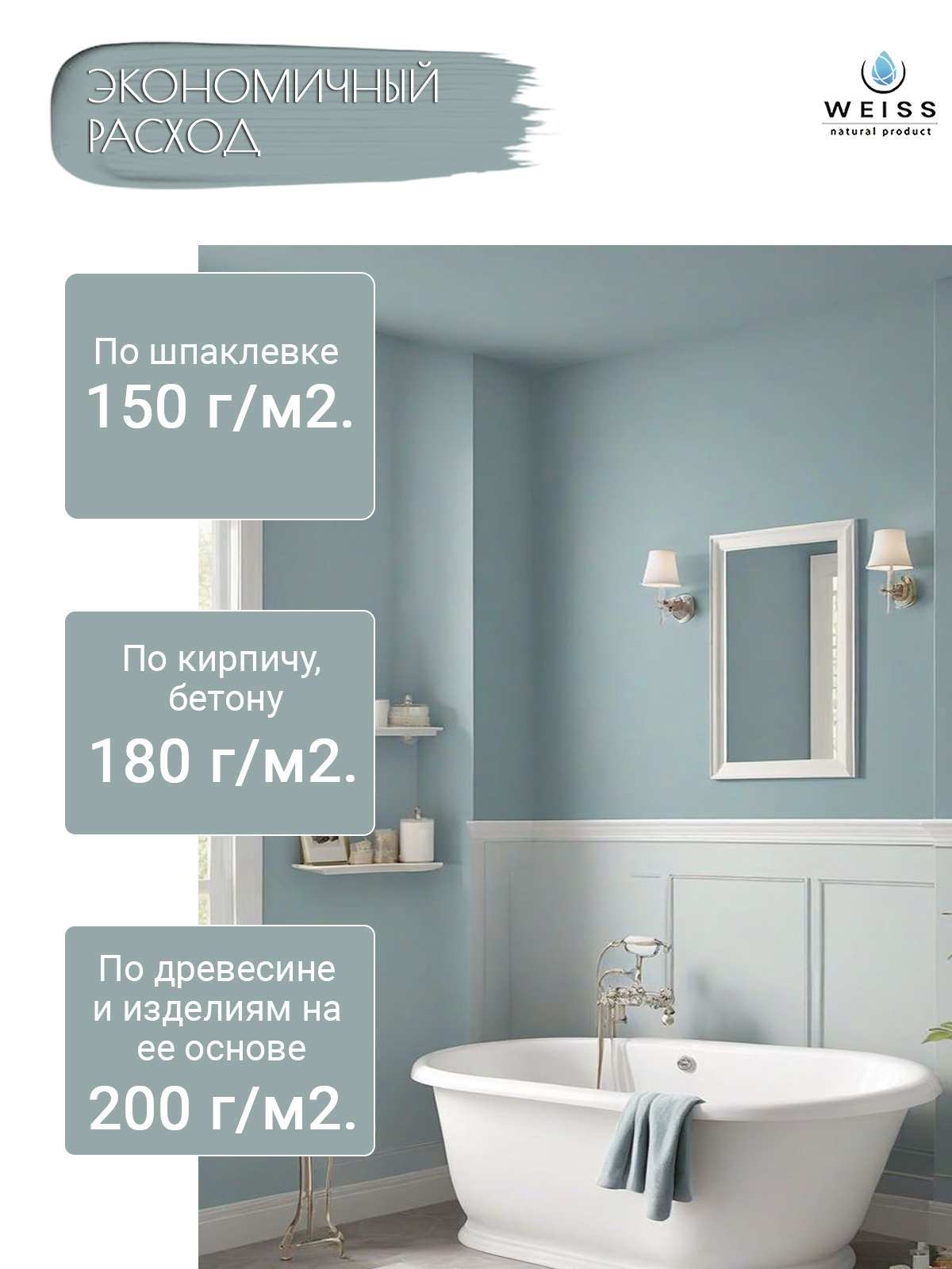 Краска акриловая, моющаяся для стен и влажных помещений, кухни и ванной комнаты 2.75л DET599 Дымчато-голубой
