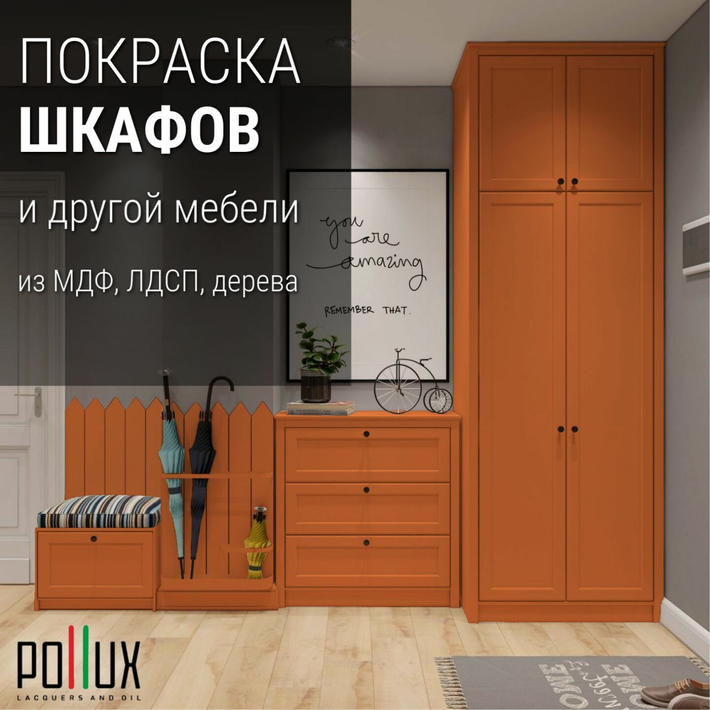 Краска для мебели без запаха матовая быстросохнущая для кухни / дерева / декора акриловая Pollux Decor Matt, объем 0,5л, цвет сигнальный оранжевый (RAL 2010)