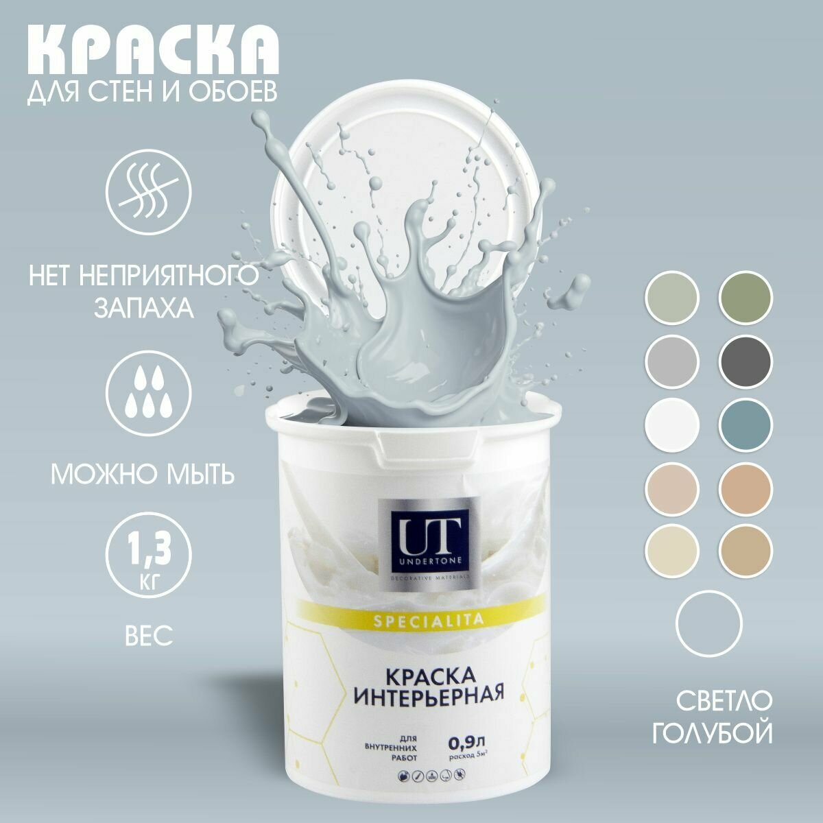 Купить Краска интерьерная Светло-голубая UNDERTONE 0,9л